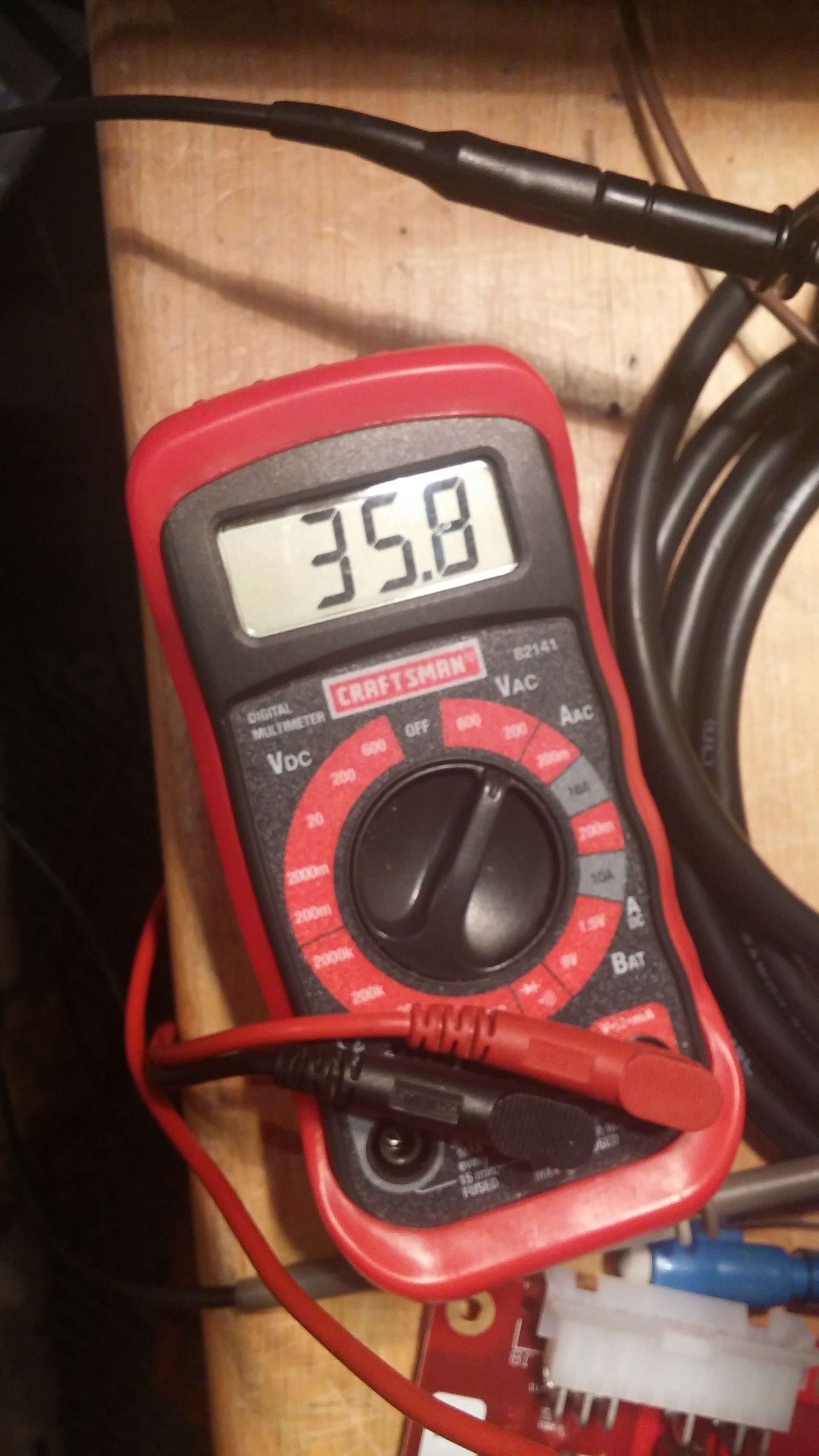 It measures a bit higher than my calculations. This is expected as the meter assumes a perfect sine wave free of any clipping. Nevertheless, it proves my calculations are in the same ballpark.
