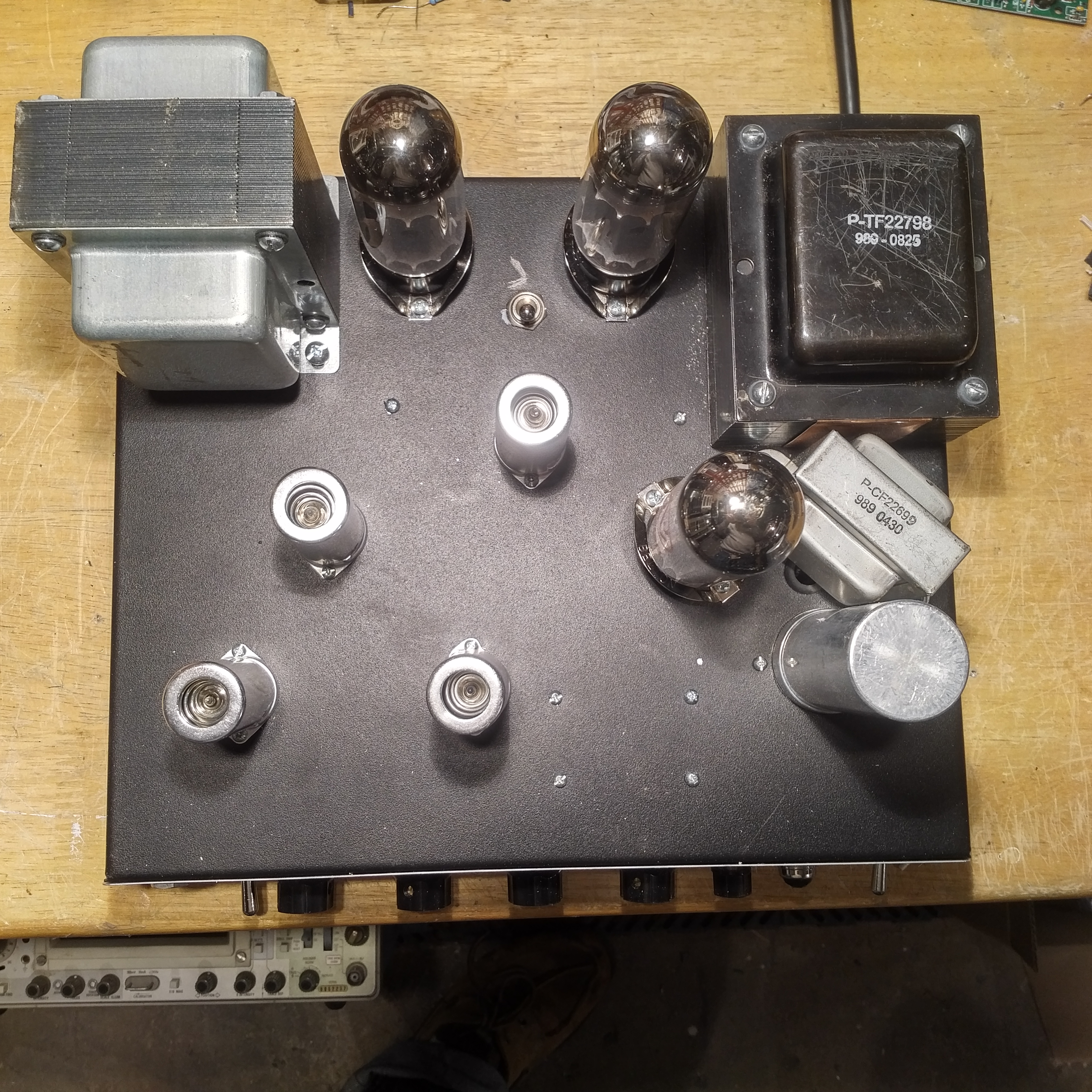 This year has turned out to be a lot more busy than I had expected! I’m back to working on my 50 watt amplifier. The electronics are finished. I am preparing the cab now.