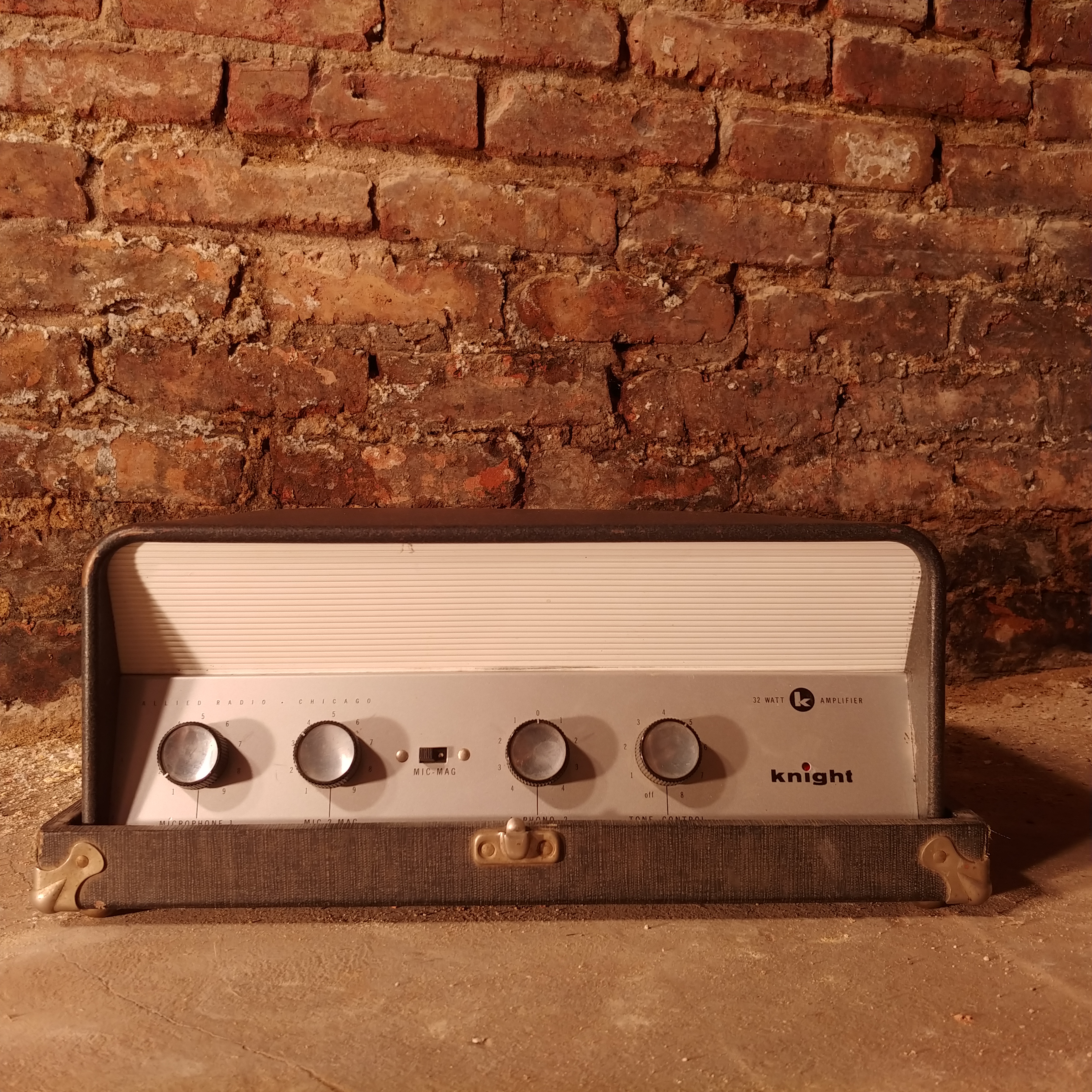I noticed the amplifier had an additional 8 pin tube socket. It was used to power the motors on the record players, rather than for an additional tube. But I thought, this would be a great spot to add another tube. How about a 6SL7? This gave me a total of 7 gain stages to play with! Now we’re talking! I ended up with a design that used all 4 knobs and all 3 switches, to make a 2.5 channel amplifier!