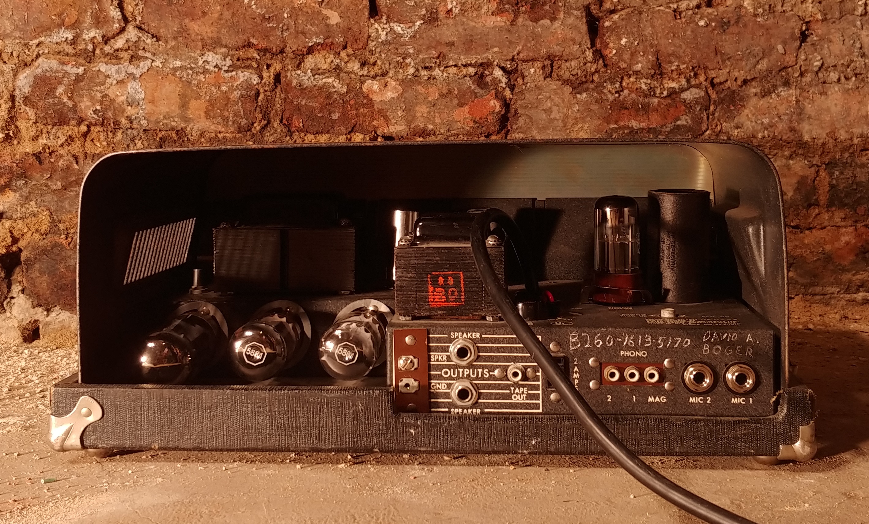 Guitar amp conversions of old PA amplifiers are very fun projects to take on. There’s so many different amplifiers, that each one is unique. It would be easy to force any design into a PA chassis, but the best conversions let the chassis dictate the design. For example, when I first received this PA amplifier for conversion, I figured it would be a quick job. While the conversion itself only took about 10 hours, the planning that went into this took quite a bit longer.
