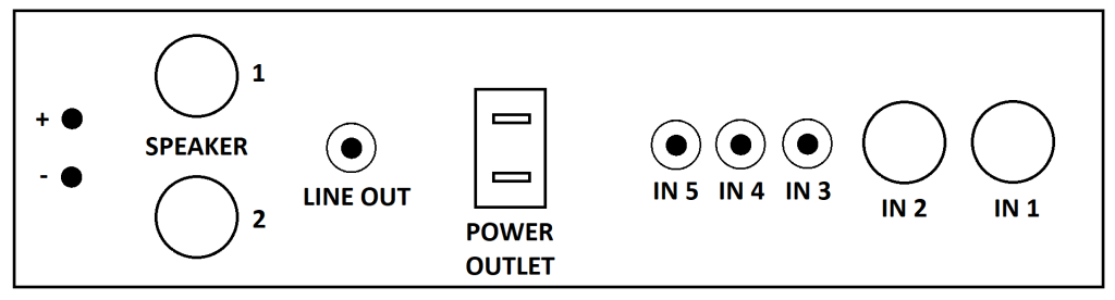 The ¼” inputs are on the back side, with two inputs set up like the typical Fender® inputs. #1 is the primary input with #2 being a little softer and darker. There are also three RCA inputs with similar characteristics to the #2 ¼” input. There are two ¼” speaker outputs and a “Tape Output” that is set up as a line-out. The impedance selector is unique to this PA amplifier, in that it has a wire that must be put into the correct impedance slot. This amplifier can run 4, 8, 16, 156, 250 and 500 ohm speakers! The 156 ohm is also usable as a 70V output, in case you want to run your cab several thousand feet away.